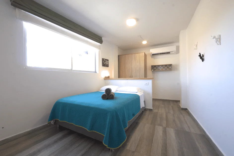 El apartamento One Love es ideal para una para pareja o familia pequeña, pueden dormir hasta 3 personas. Está ubicado en el segundo piso de Simmer Down y es bastante luminoso pues tiene ventanas que dan a dos diferentes costados del edificio.